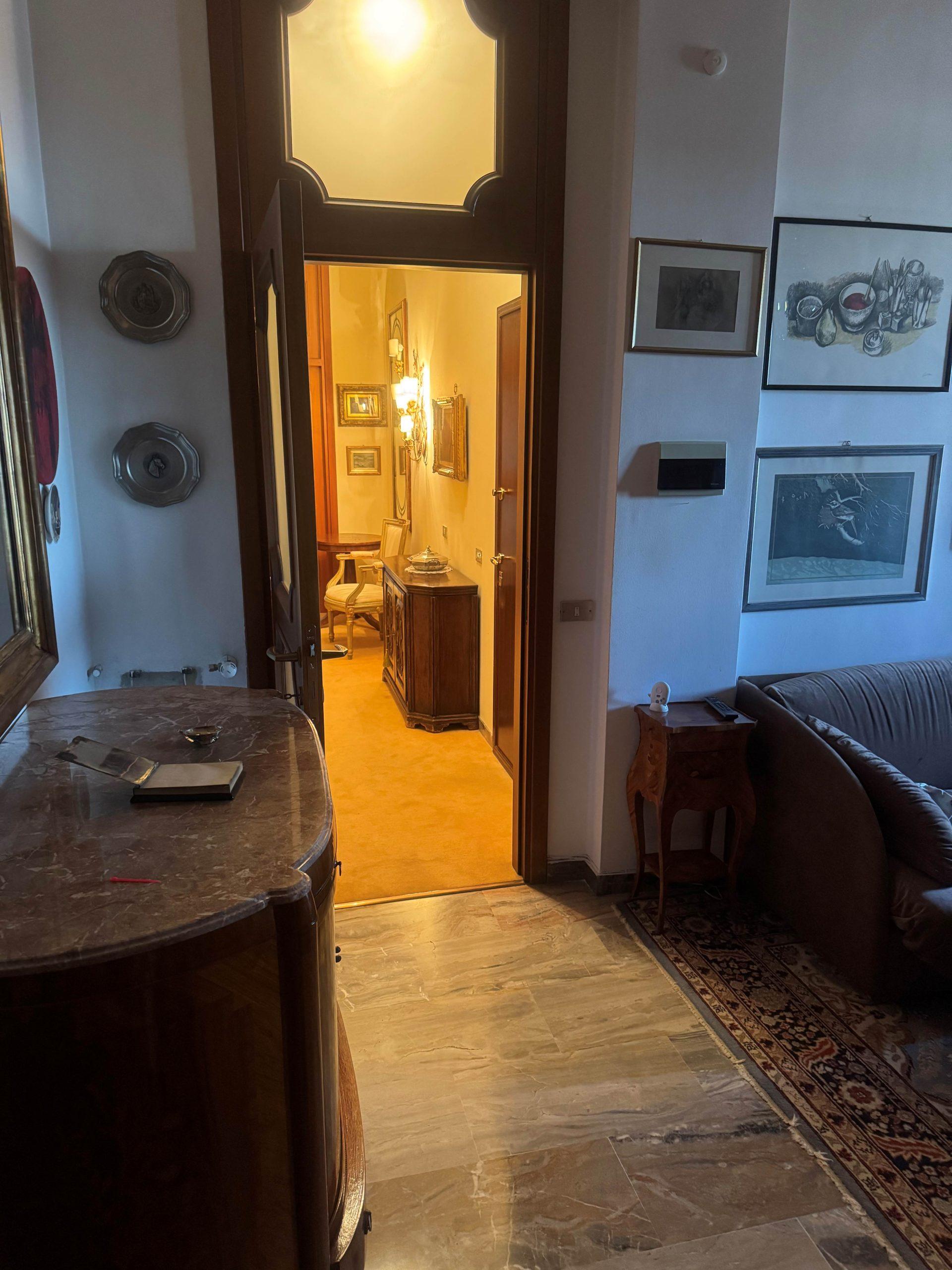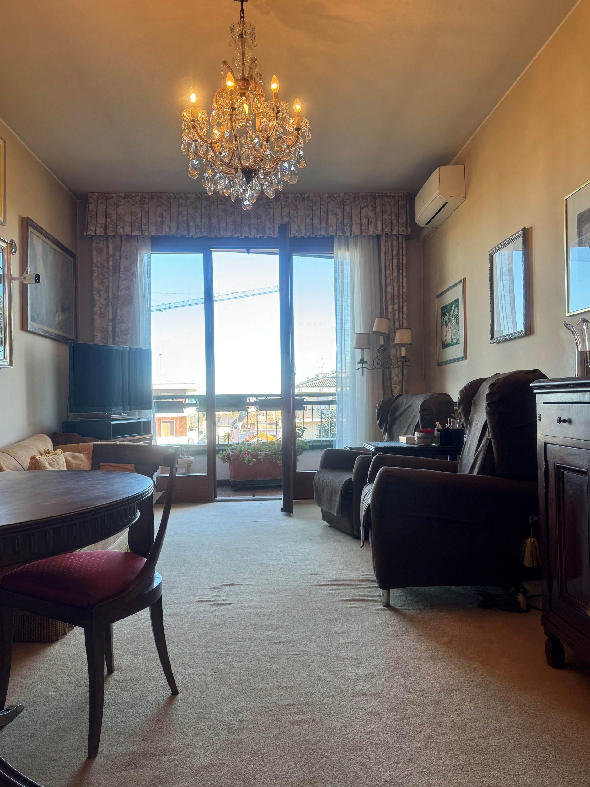 L’appartamento, caratterizzato da ambienti ampi, luminosi e ben distribuiti, si apre su un elegante ingresso che conduce al grande salone doppio con accesso diretto al terrazzo — perfetto per momenti di relax o convivialità.