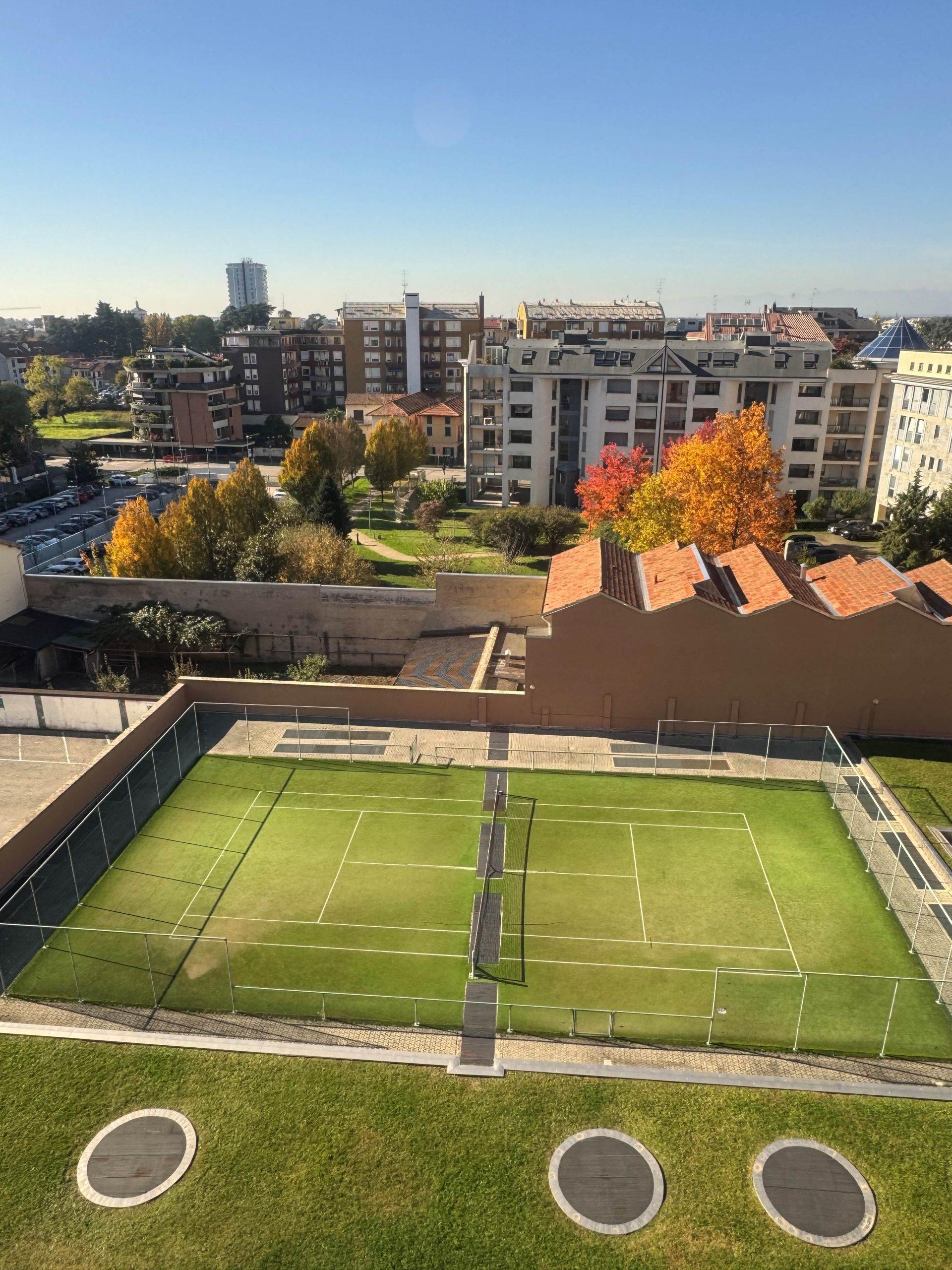 In signorile condominio con parti comuni d’ impatto, proponiamo prestigiosa soluzione dalla superficie commerciale di circa 195 metri quadrati disposto su un unico livello, situato al sesto piano. L’ingresso del complesso accoglie con fontana scenografica, mentre il campo da tennis condominiale dona un tocco di esclusività e benessere quotidiano.